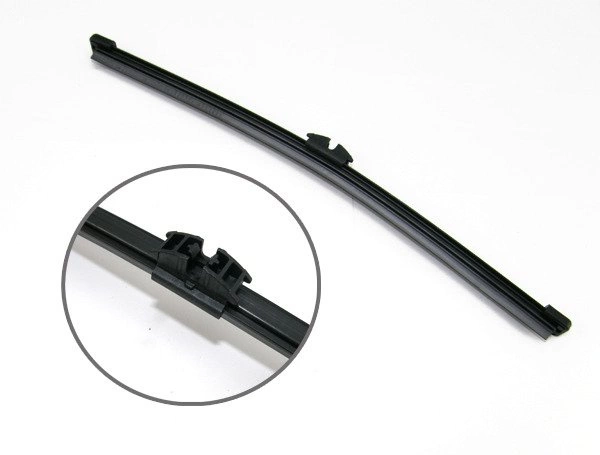 Tylna wycieraczka jest zapakowana w pudełku z przednimi wycieraczkami. Na pudełku znajduje się naklejka informująca, że tylne pióro jest dołączone.