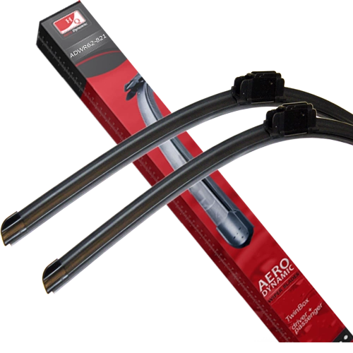 Ten zestaw przednich wycieraczek zawiera pióro kierowcy 700 mm oraz pasażera 650 mm. Fabryczny łącznik J-hook 12mm umożliwia szybki, beznarzędziowy montaż, a zaawansowana guma naturalna z powłoką grafitową i aerodynamiczny spojler gwarantują cichą i bezsmugową pracę w każdych warunkach.