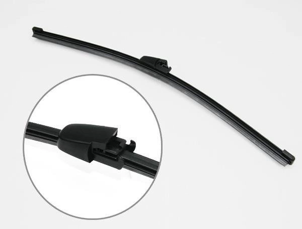 Tylna wycieraczka jest zapakowana w pudełku z przednimi wycieraczkami. Na pudełku znajduje się naklejka informująca, że tylne pióro jest dołączone.