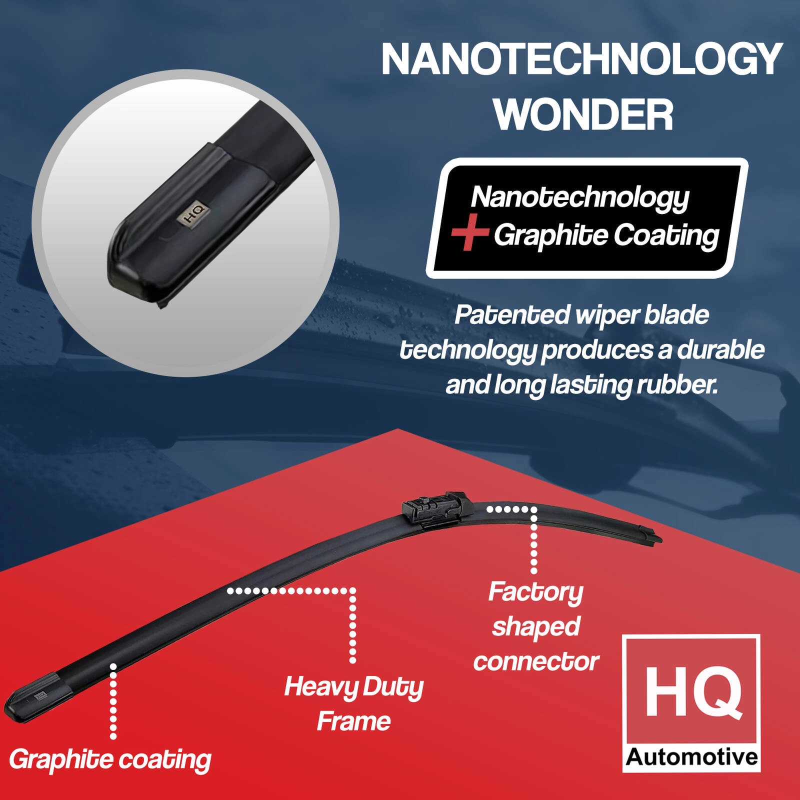 Pióra HQ Automotive są wykonane z trwałej, naturalnej gumy pokrytej grafitem i mają aerodynamiczną konstrukcję, dzięki czemu mogą służyć przez lata. Rzeczywista żywotność zależy jednak od wielu czynników, takich jak częstotliwość użytkowania, lokalne warunki pogodowe i sposób przechowywania. Dla najlepszej widoczności i bezpieczeństwa zalecamy coroczną wymianę.